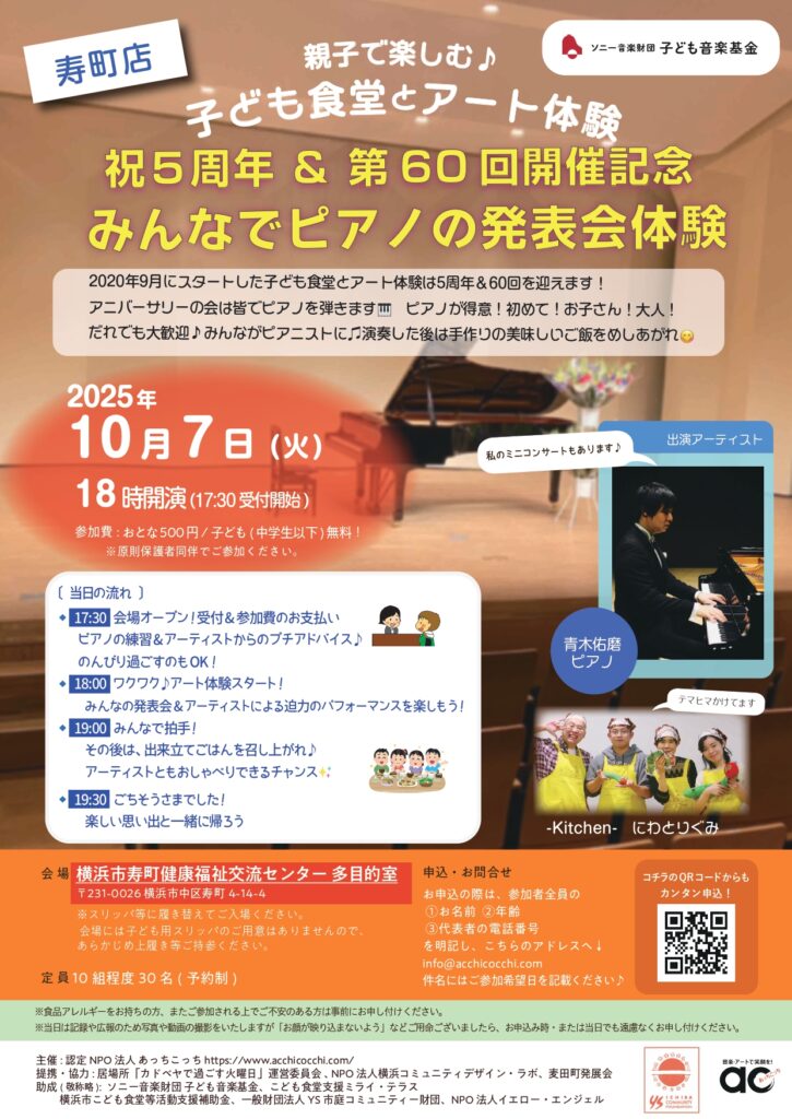 10/7(火)㊗️5周年&第60回♪子ども食堂とアート体験🎹@寿町健康福祉交流センター